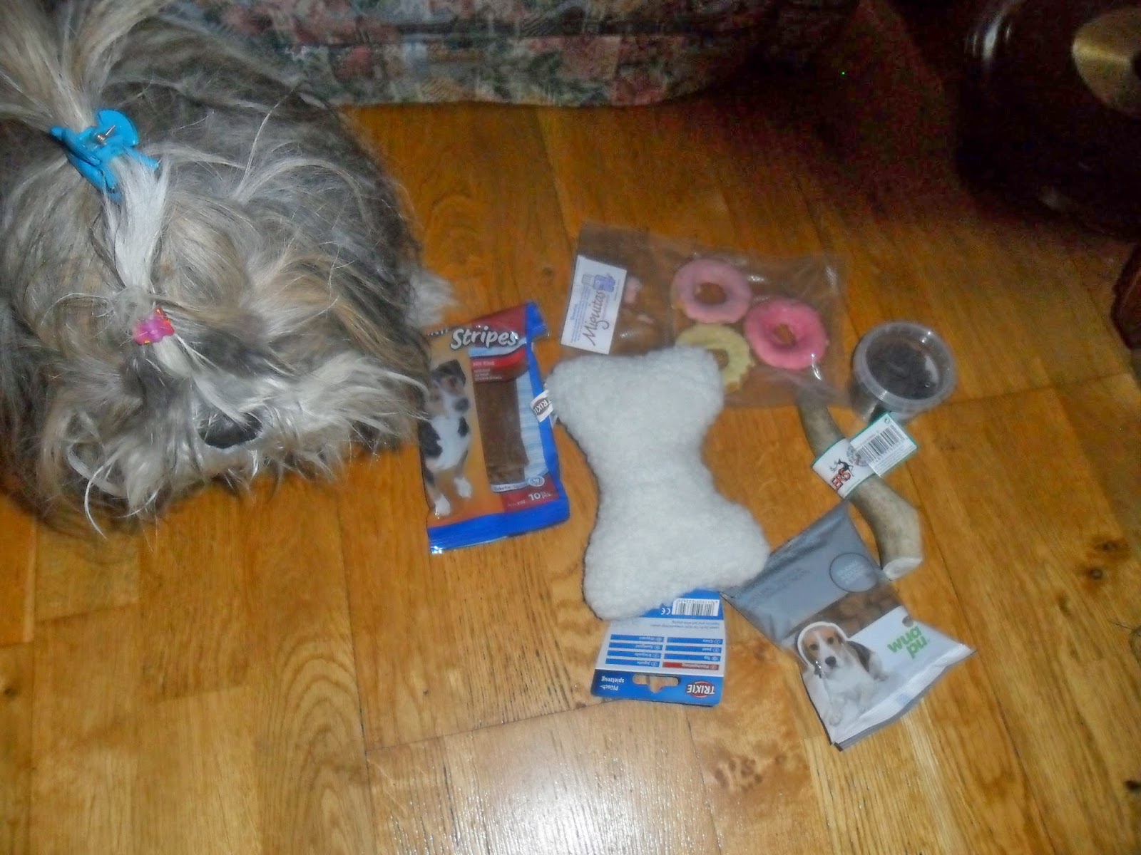 Si me preguntáis a mí qué es lo que más valoro en una caja de estas características es que nos permita probar variedad de piensos, porque Xi Wang no puede comer cualquiera y tampoco se digna a comer cualquier pienso. Pero los peluditos son como los niños, ellos tienen otra escala para determinar si algo les gusta o no, y en ella chuches y juguetes suelen ser los productos más apreciados. Cuando Xi Wang vio todas esas cosas extendidas se puso como loco de contento, no quería posar, lo quería todo y de inmediato, encima el día era muy oscuro, así que pido disculpas por las fotos y os dejo con la estrella invitada.