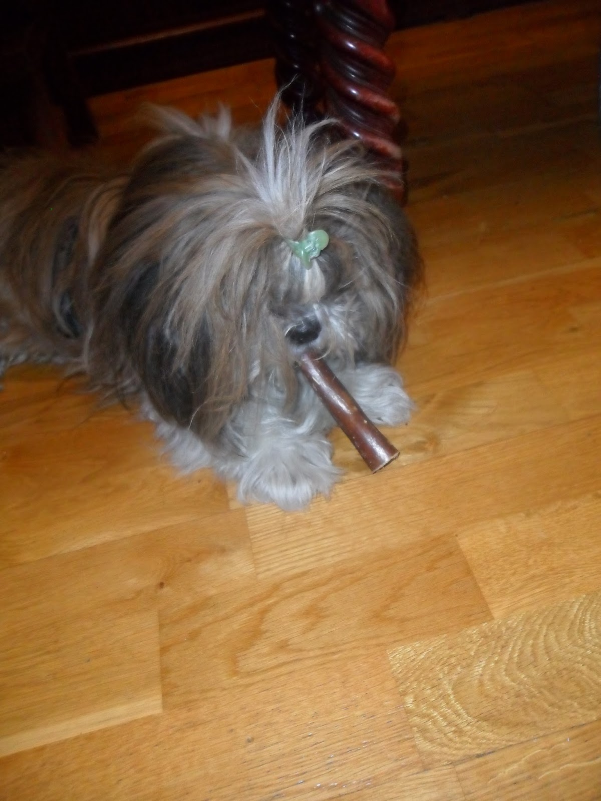 El lotazo de Pet Secret se completaba con unas galletitas naturales de queso y sobrasada que duraron un suspiro, con una lata de filete de pollo desmenuzado y en gelatina, y con una tráquea desecada de vaya usted a saber qué animal.